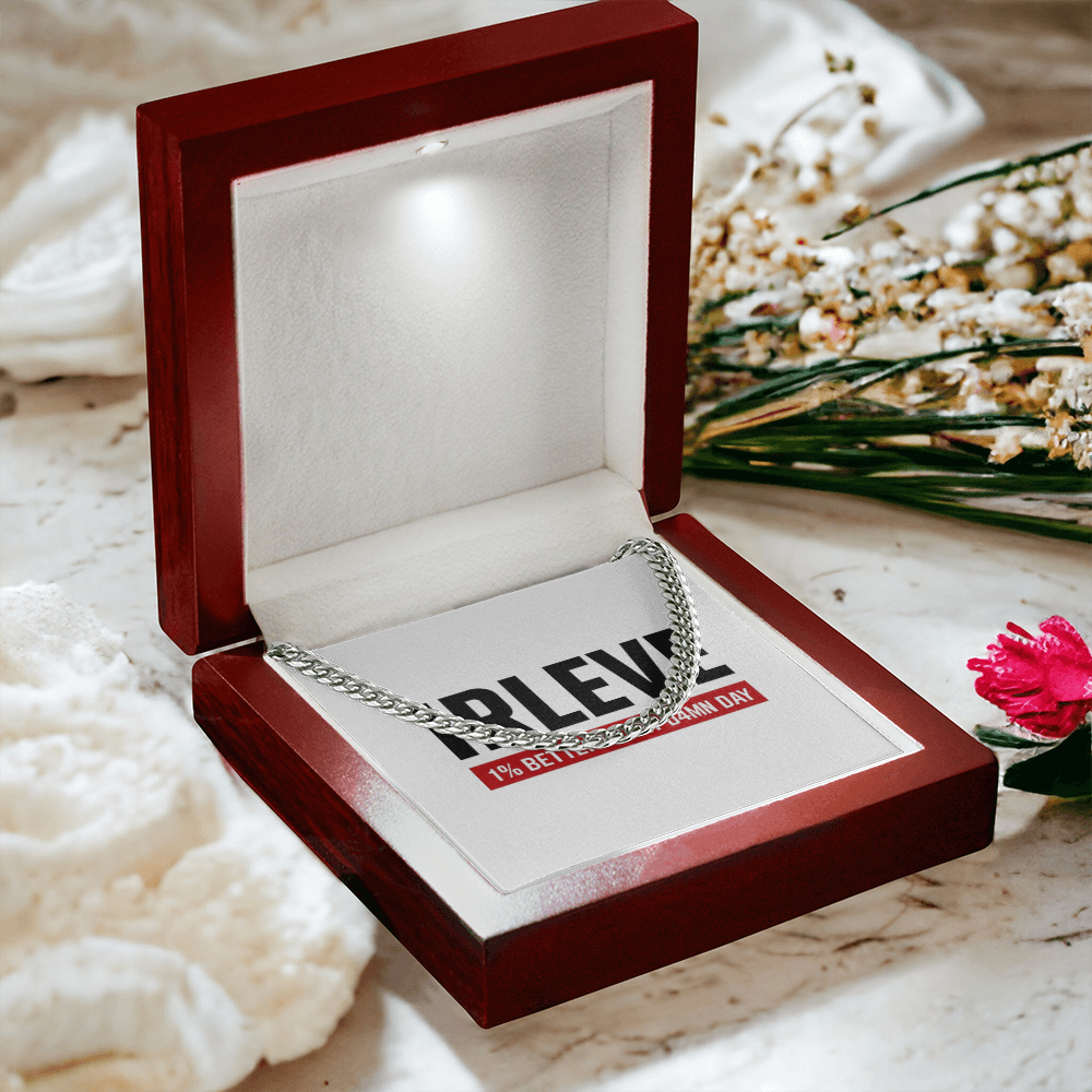 Designed for those who move with discipline, confidence, and purpose, the IRLEVE Cuban Link Chain represents the mindset of getting 1% better every d4mn day. Clean, bold, and timeless, this piece is made to elevate your everyday fit while keeping your standards high.